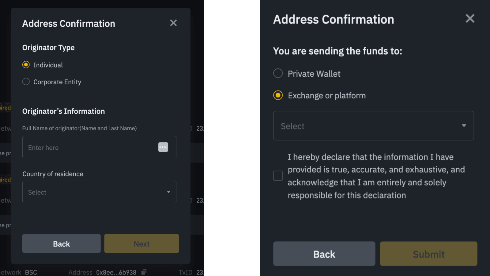 • Withdrawals from Binance: Users will be asked to provide the beneficiary’s information when sending any amount of crypto.
