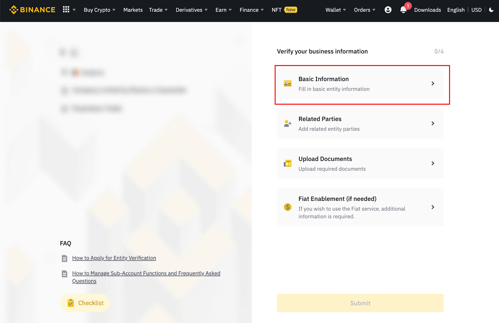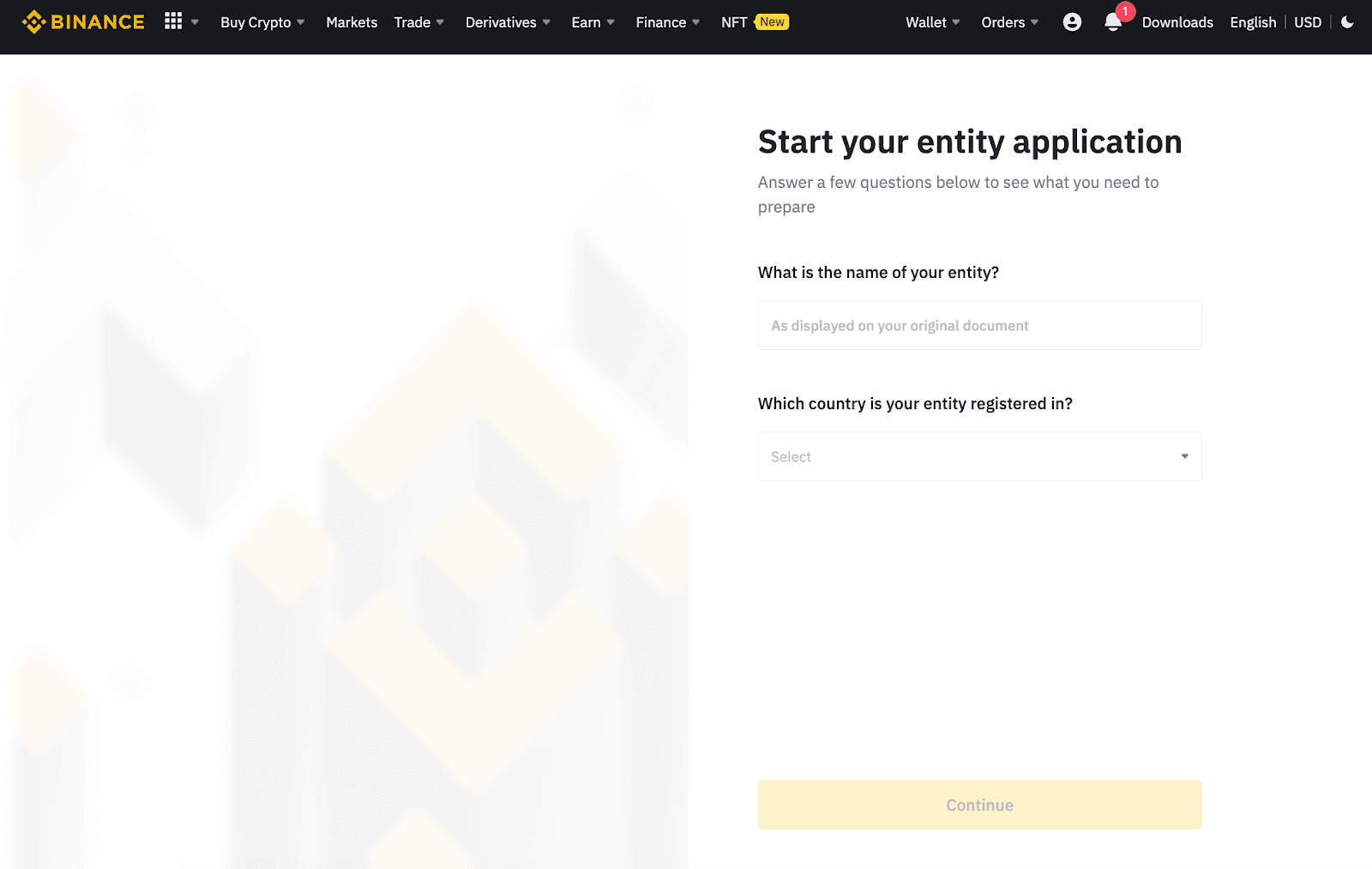 i) Click [Sign up for an entity account] on the Binance homepage.