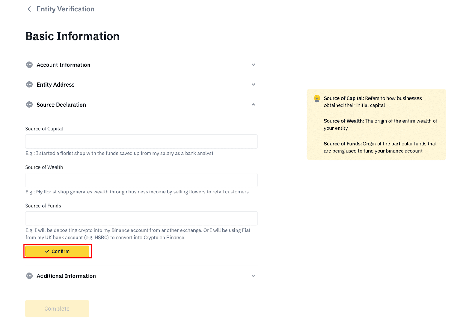 3.1.3 Fill in the Source Declaration, including the Source of Capital, Source of Wealth, and Source of Funds.