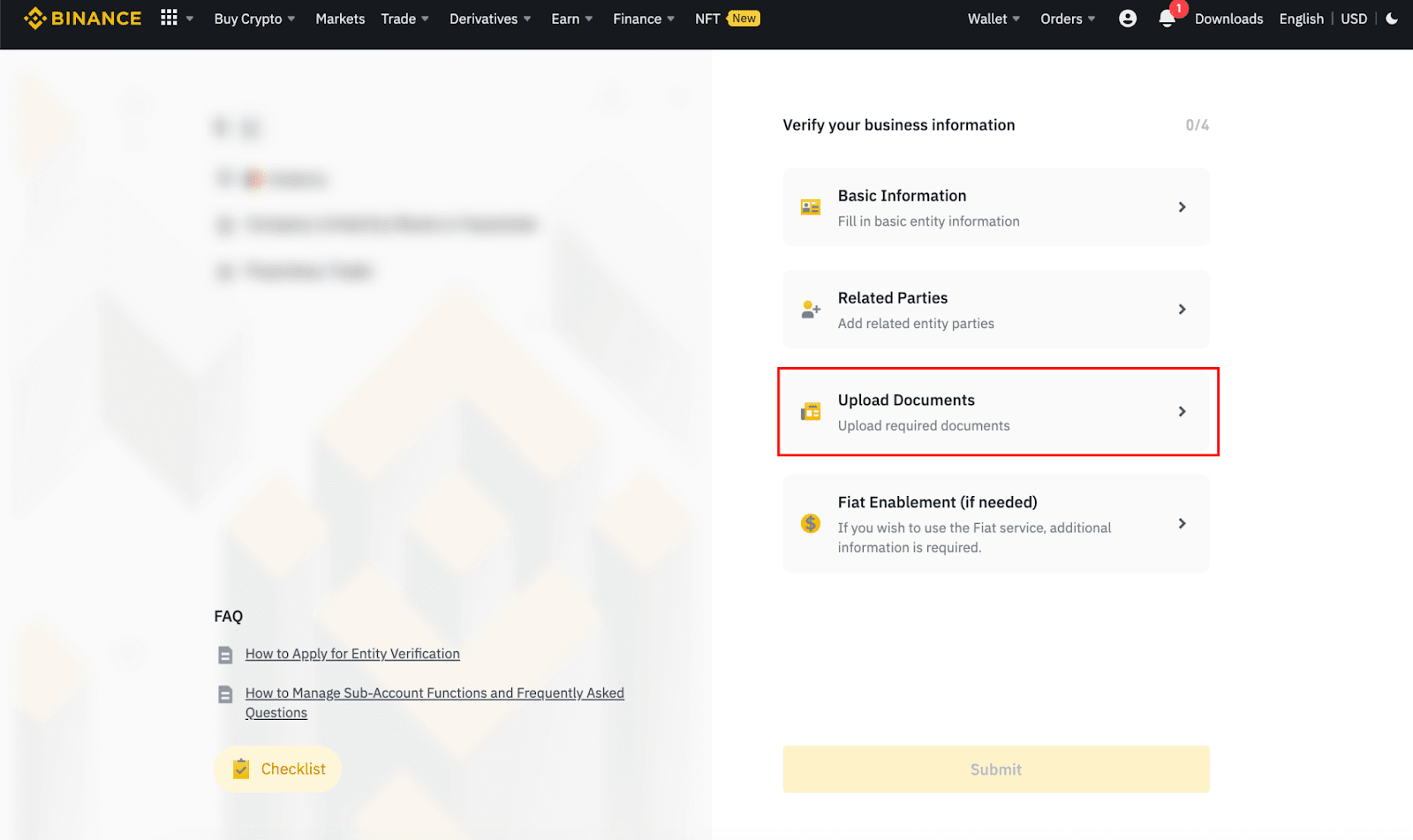 1) For entity applications submitted before April 26, 2022, please upload the following documents in the [Identification] section to upgrade your account for fiat access: