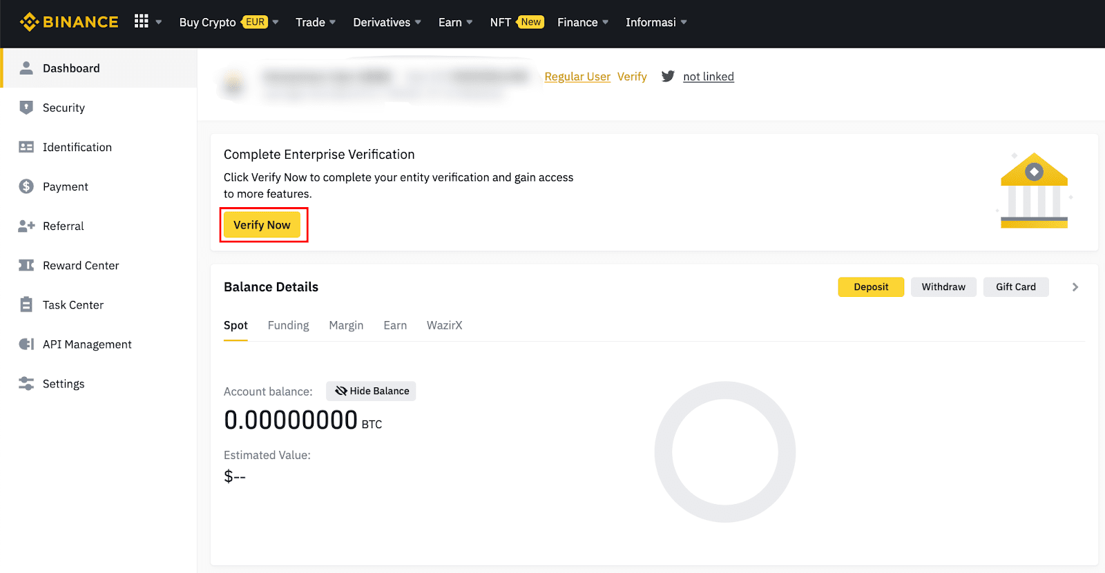 vi) After enabling 2FA, click [Verify Now] to start the Entity Verification.