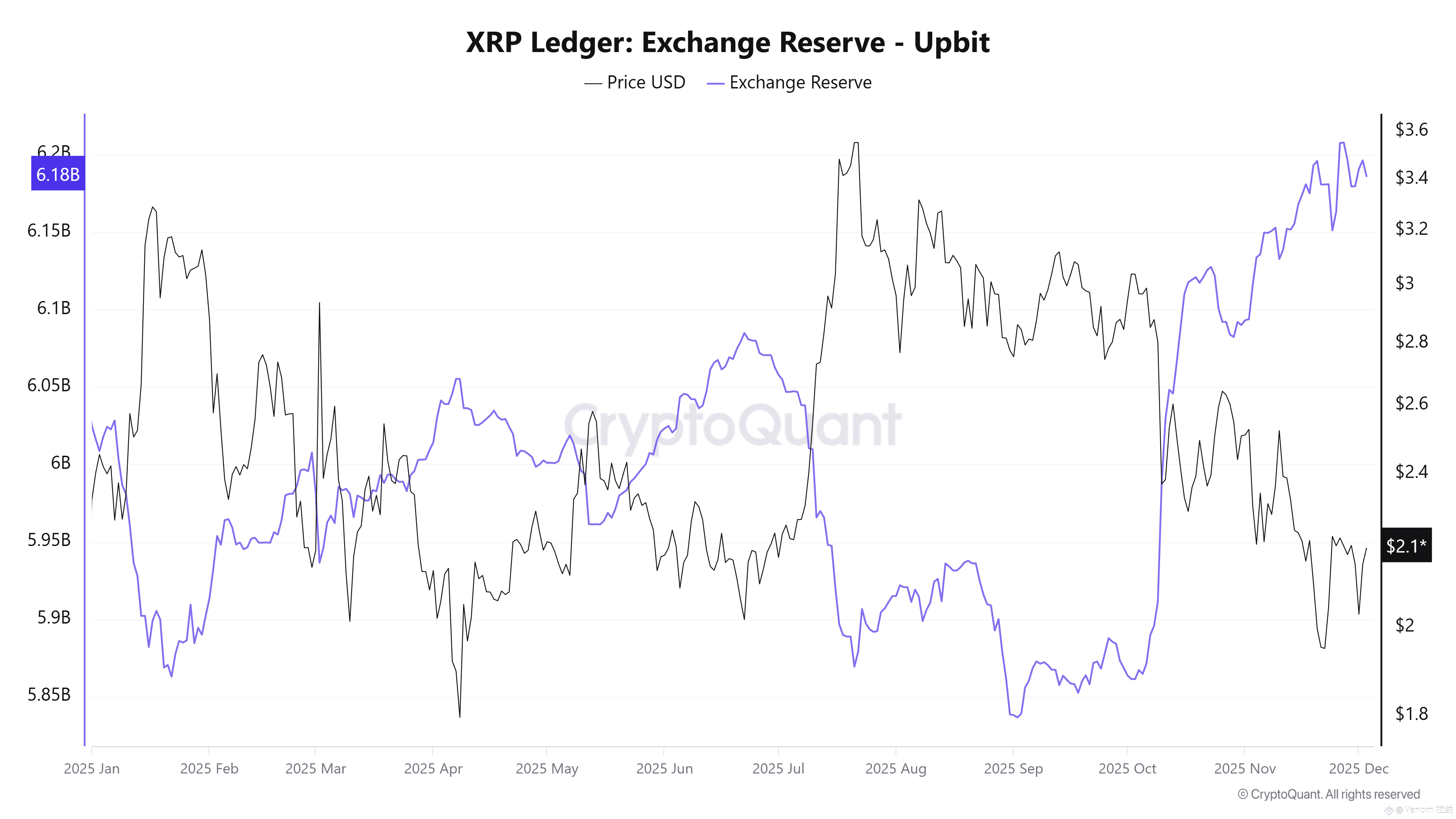 XRP reserves on Upbit have increased steadily for three consecutive months. They are now at the highest level of 2025. This trend could create potential selling pressure for XRP in December.
