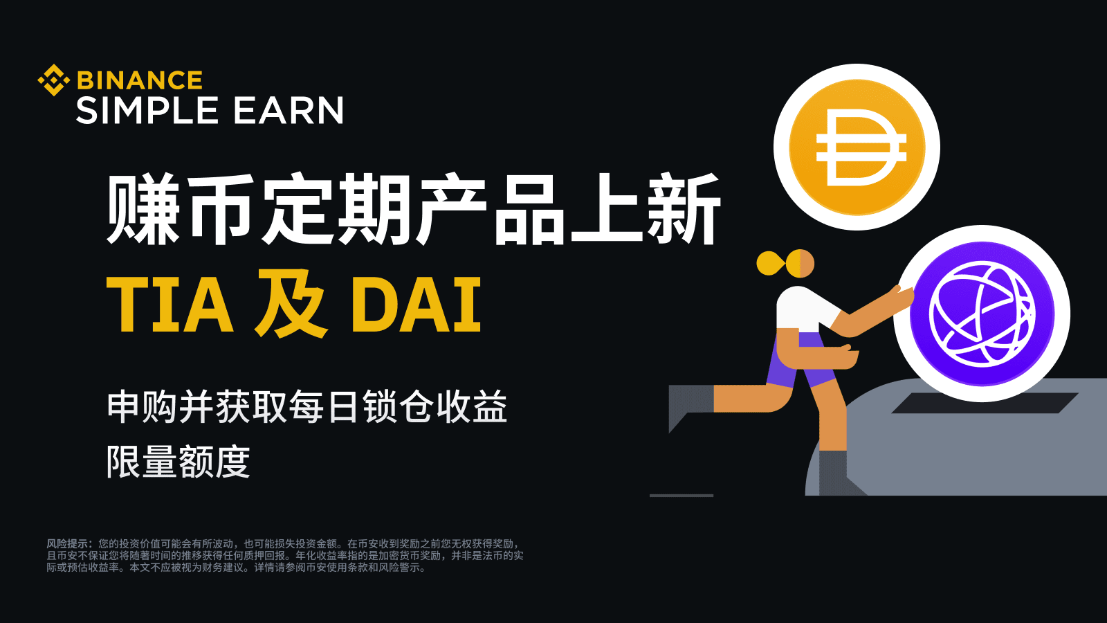 La plataforma Binance Earning Coin lanzará productos de plazo fijo TIA y DAI a las 20:00 del 7 de noviembre de 2023 (hora del Octavo Distrito Este). Puede obtener beneficios suscribiéndose. Está invitado a experimentarlo.