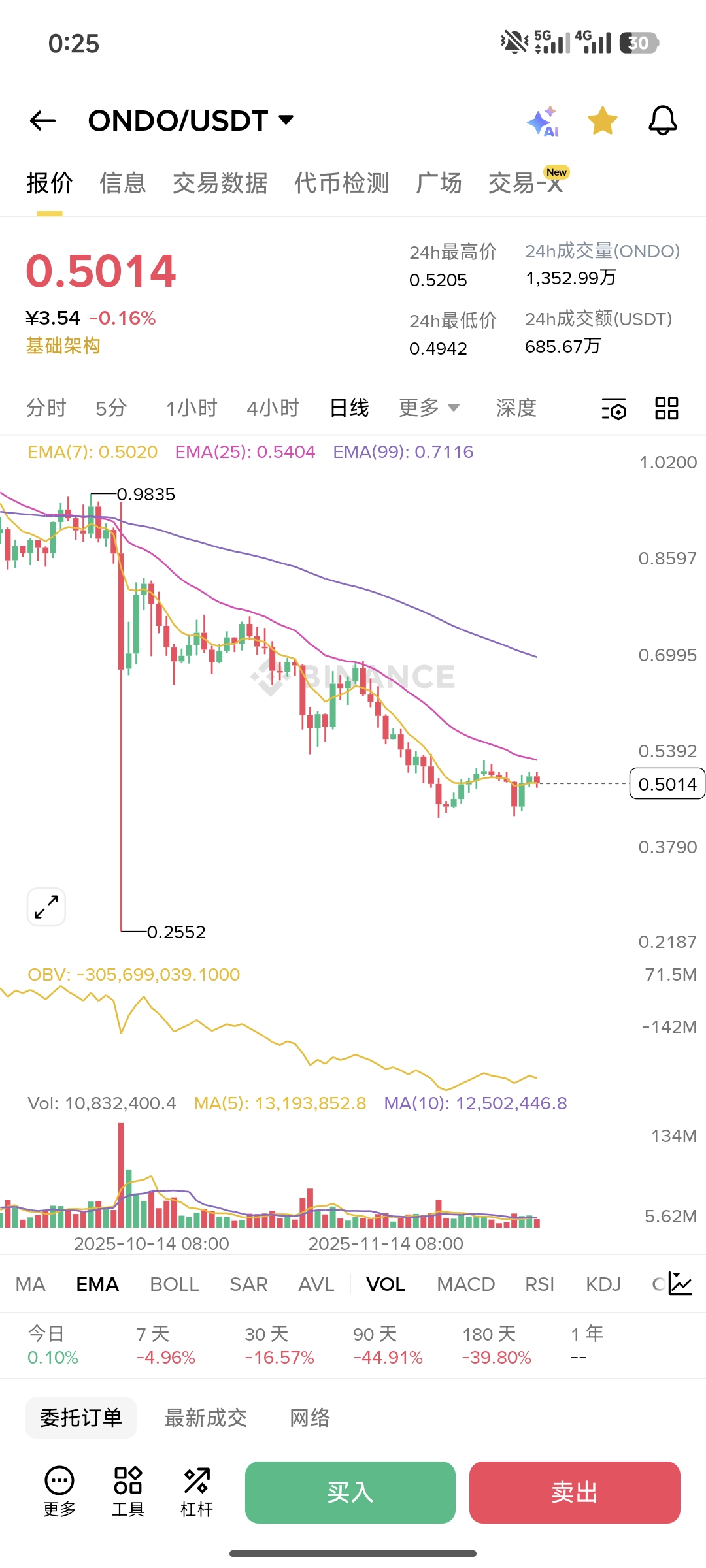 Primero es el desbloqueo y la presión de venta de ballenas — las monedas en manos de los primeros inversores se están desbloqueando gradualmente, antes había una ballena llamada Arthur Hayes que almacenó más de 36 millones de ONDO en los intercambios, ¿quién no se asustaría? Cuando el mercado ve que alguien quiere vender, primero se lanza a bajar.