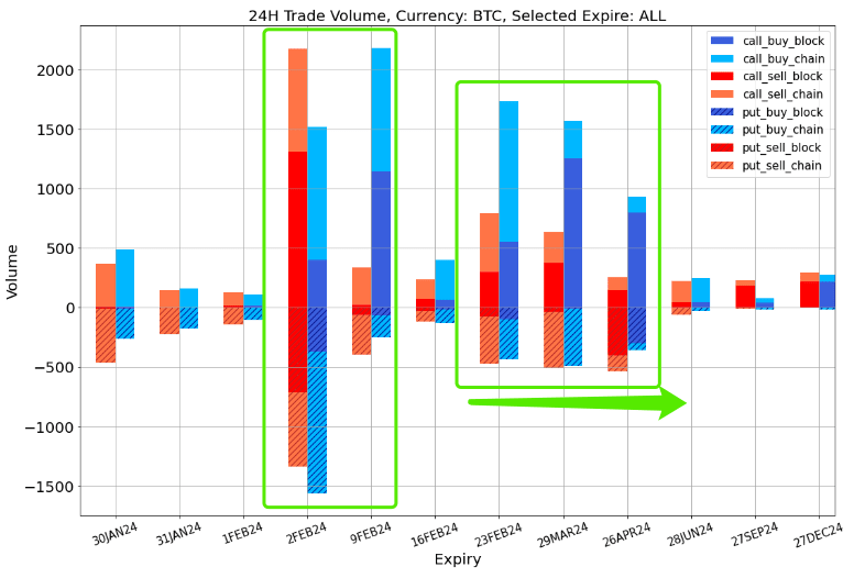 Fuente de datos: Deribit, una gran cantidad de opciones de compra largas concentradas alrededor de 0,2-0,3 Delta del 9 de febrero/29 de marzo/26 de abril