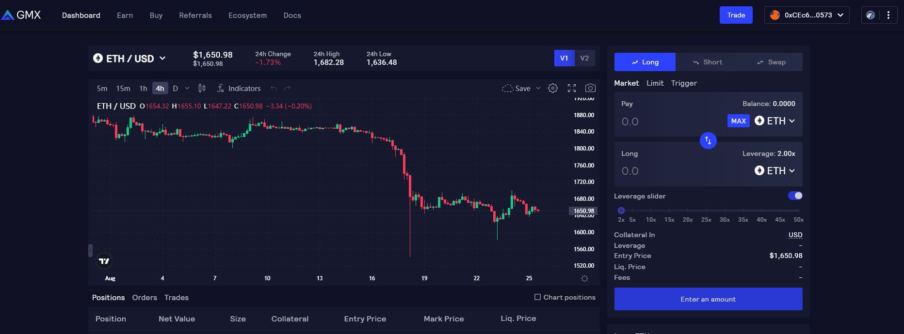En el proceso, los comerciantes pagan tarifas comerciales, tarifas de apertura/cierre y tarifas de préstamo a cambio de la ventaja de ir en largo o en corto frente al dólar estadounidense en tokens designados (btc, eth, avax, unl y link).