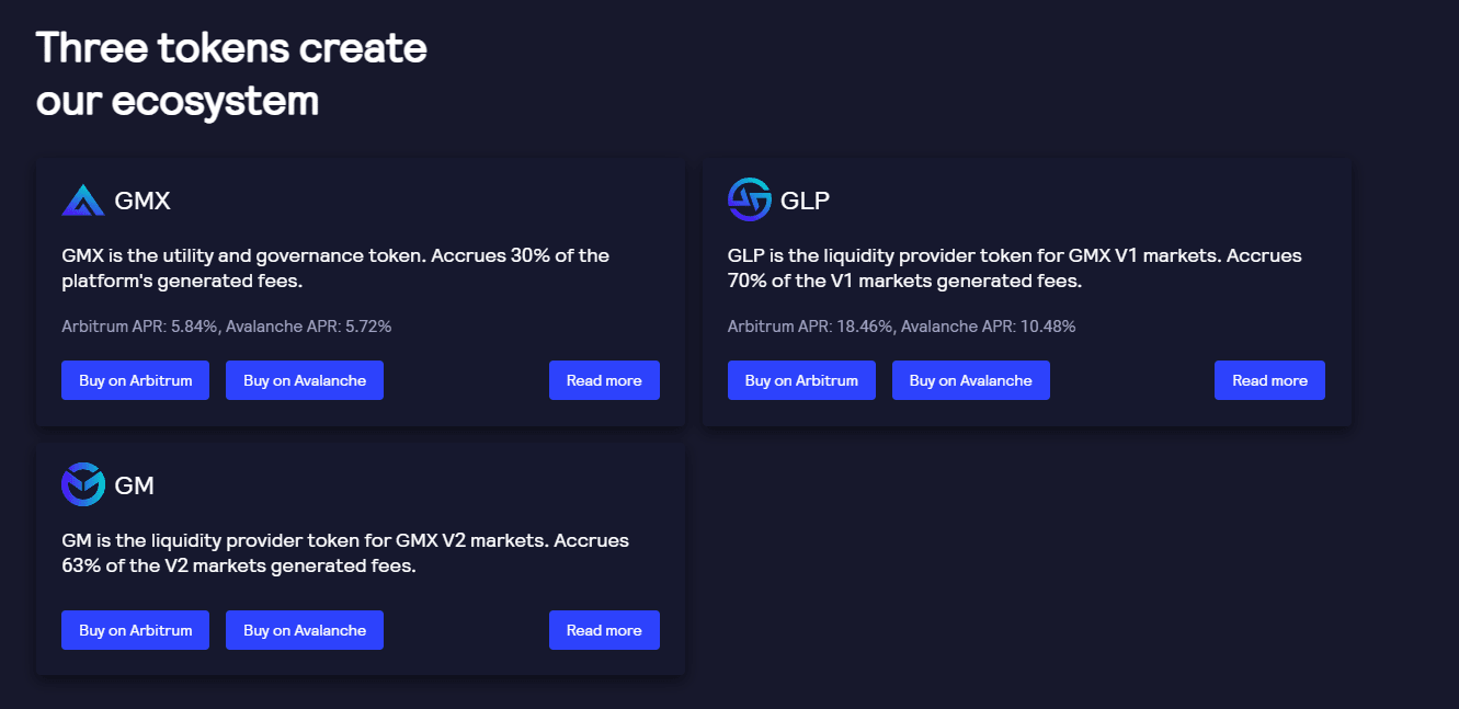 GMX tiene un fondo de liquidez, GLP, que es un fondo de activos múltiples que proporciona liquidez para el comercio de margen: los usuarios pueden operar en largo o en corto y ejecutar operaciones acuñando y quemando tokens GLP. El grupo gana tarifas LP por transacciones comerciales y apalancadas, que se distribuyen a los titulares de GMX y GLP.