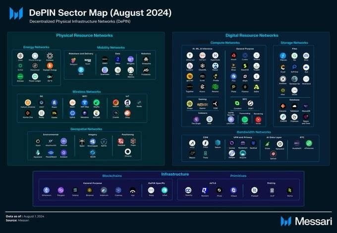 Este año se ha producido un resurgimiento significativo de la financiación de capital de riesgo para proyectos criptográficos. La inversión global ascendió a 6.700 millones de dólares en agosto de 2024, según Rootdata. En los últimos meses, el auge de la red DePIN está demostrando una adaptación al mercado similar a las primeras etapas de la "economía colaborativa". Estos proyectos cubren múltiples áreas de DePIN, cada una de las cuales demuestra escenarios de aplicación únicos.