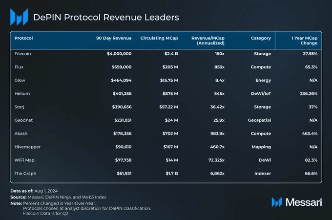 Los ingresos de DePIN de un vistazo Messari