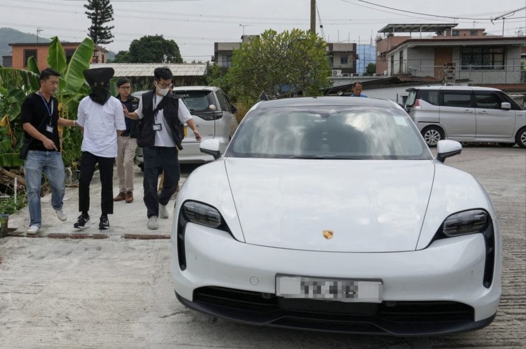 La policía arrestó al actor de televisión Cheng Chun-hei y confiscó su Porsche blanco. Foto: Elson Li/SCMP
