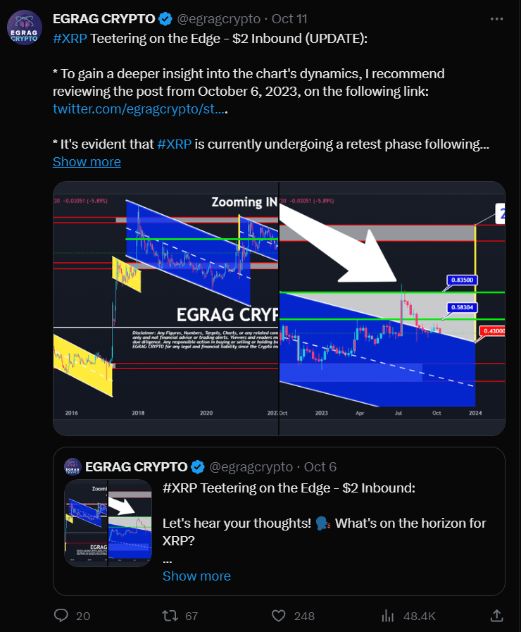 EGRAG, conocido por sus análisis perspicaces, ha presentado una actualización de su publicación anterior, que informamos recientemente, arrojando luz sobre la trayectoria del precio de XRP.