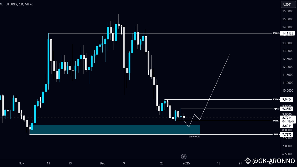 #APT está manteniendo el nivel de soporte de PWL $8.6 y anticipando que la liquidez se barrerá por debajo de este nivel y un toque en el FVG diario.