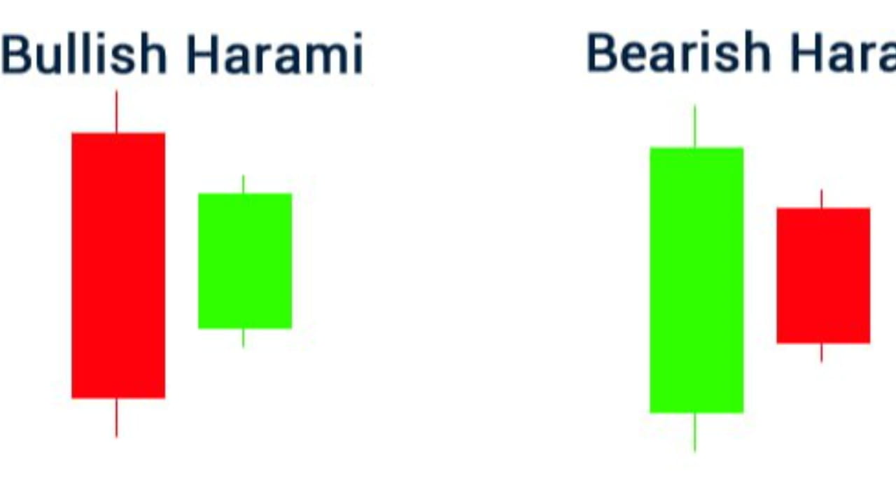 El patrón de velas Harami es un patrón de dos velas que indica una posible reversión en la tendencia del mercado. Se forma cuando una pequeña vela, ya sea alcista o bajista, está contenida dentro del cuerpo real de la vela anterior.