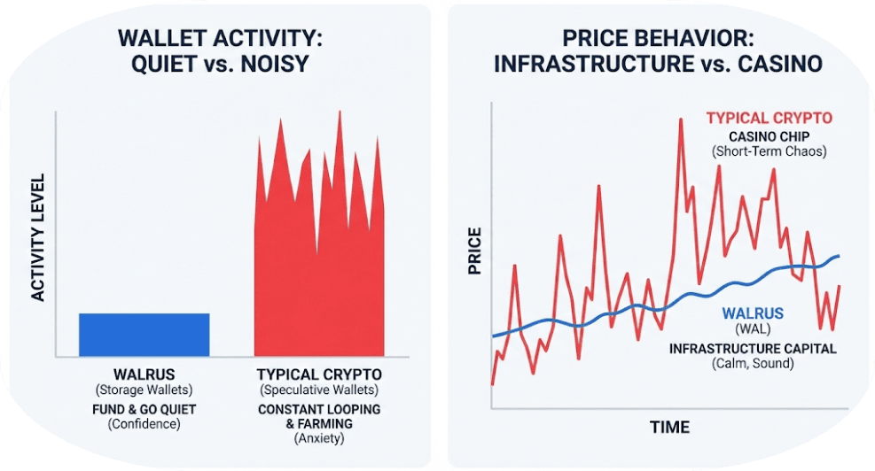 Cuando las personas preguntan por qué Walrus nunca se convierte en tendencia como lo hacen otros proyectos, mi respuesta suele ser simple. Nunca fue construido para entretener. La mayor parte de la crítica que veo se reduce al mismo punto. No hay una historia ruidosa, no hay emoción constante y no hay razón para comerciar todos los días. Y esa ausencia es exactamente lo que atrae a usuarios serios.