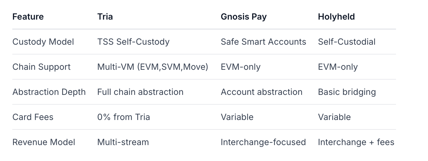 Adquisición de Usuarios Exponencial: Tria duplicó de 150,000 a más de 300,000 usuarios en menos de un mes, demostrando un ajuste excepcional del producto al mercado. El protocolo procesó más de $20M en volumen en sus primeros tres meses—13 veces más que la tarjeta de EtherFi en el mismo período. Crypto.news