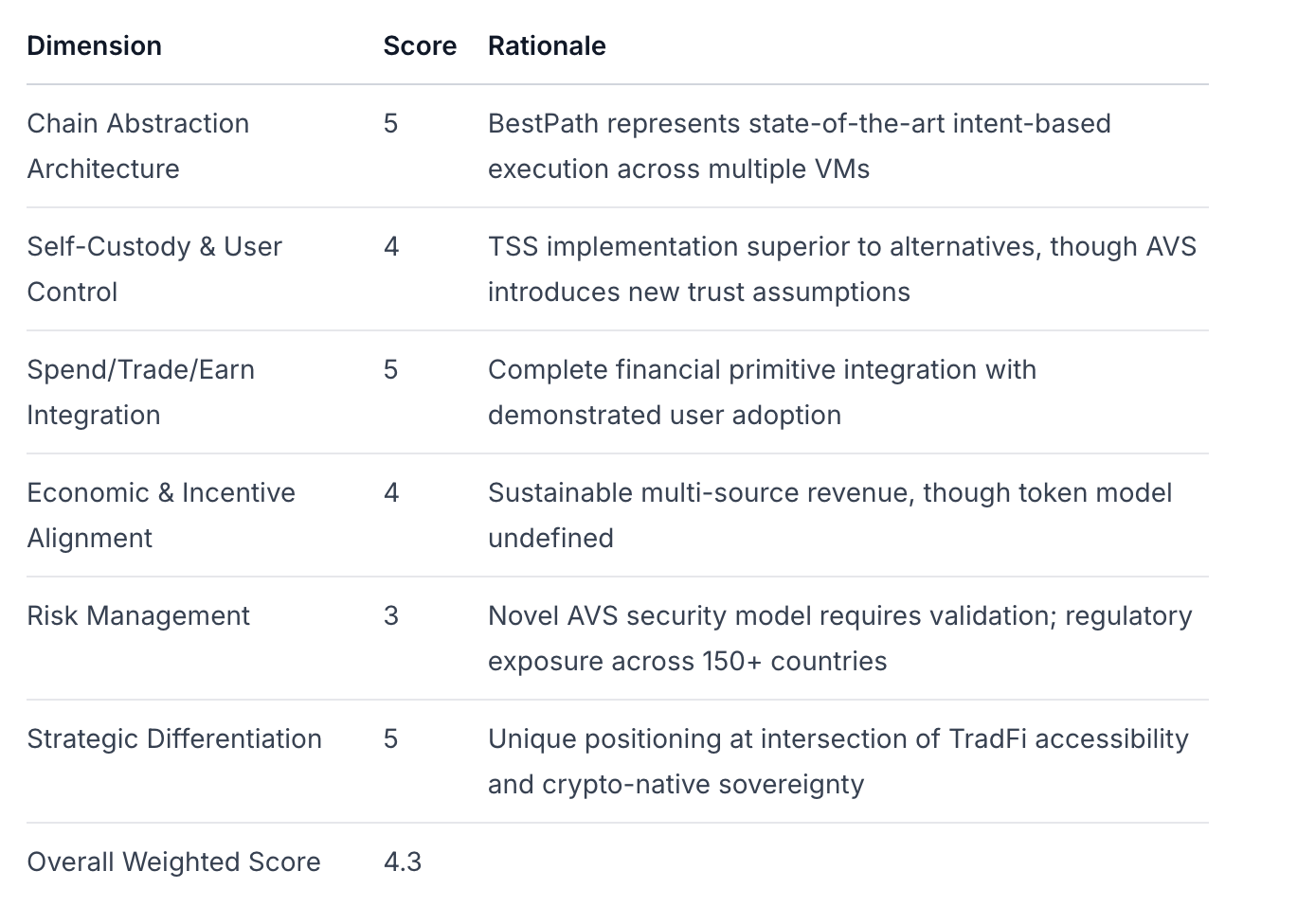 Tria representa un cambio de paradigma en la experiencia de usuario de criptomonedas a través de una verdadera abstracción de cadena, ofreciendo un neobanco autocustodiado que procesa más de $20M en volumen con más de 300,000 usuarios en sus primeros tres meses. Construido sobre BestPath AVS—un mercado de intenciones potenciado por EigenLayer—Tria elimina puentes, tokens de gas y cambios de cadena mientras mantiene la custodia total del usuario a través de Esquemas de Firma de Umbral. El protocolo demuestra una tracción temprana excepcional (13 veces más rápido que la tarjeta de EtherFi) y una generación de ingresos sostenible (ingresos tempranos de $1.2M) a través de márgenes de intercambio, tarifas de intercambio y productos de rendimiento. Si bien la dependencia del modelo AVS no probado introduce riesgo de ejecución, la arquitectura técnica de Tria, el pedigrí del equipo y la posicionamiento en el mercado justifican una seria consideración institucional tanto para oportunidades de inversión como de integración.