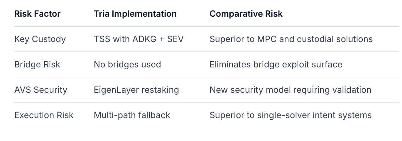 Centralización Actual: Tria mantiene el control operativo sobre los parámetros de BestPath, la elegibilidad del simulador y las asociaciones en el ecosistema. El equipo no ha divulgado detalles de la hoja de ruta de descentralización, representando un riesgo clave de dependencia.