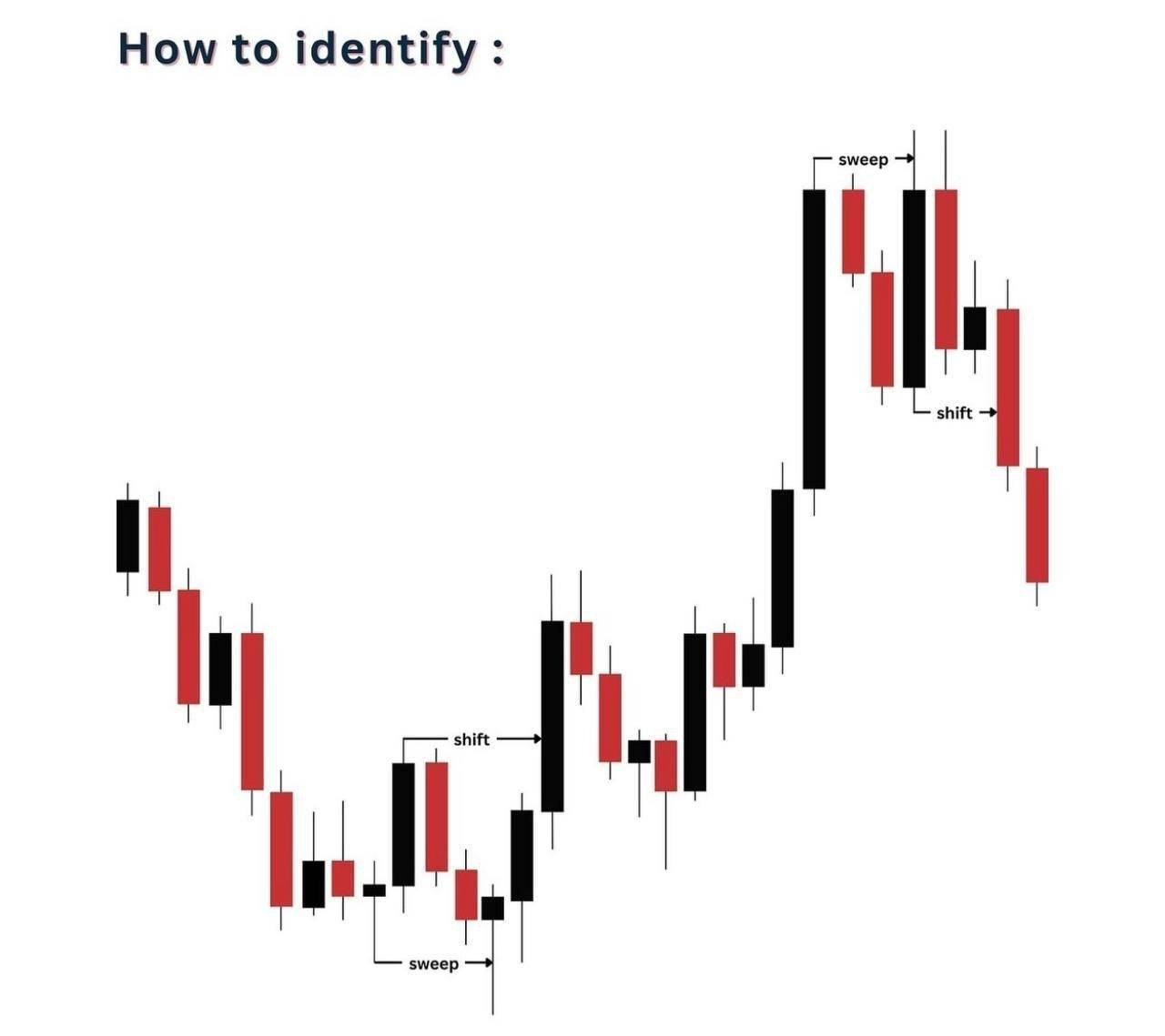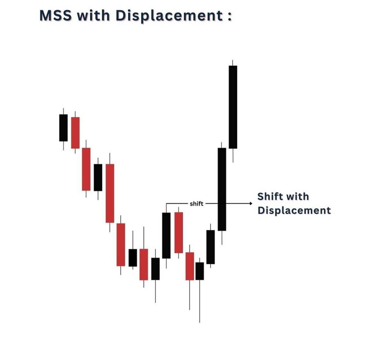 ◆ El cambio indica una posible reversión en las tendencias del mercado, inicialmente caracterizado por un máximo más bajo en una tendencia alcista o un mínimo más alto en una tendencia bajista, seguido de un desplazamiento.