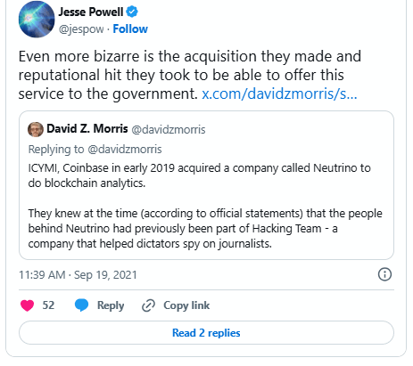 Luego, Coinbase anunció que los empleados de Neutrino con conexiones a Hacking Team dejarían la empresa.