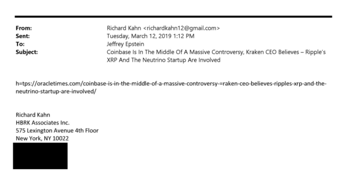 Los nuevos documentos publicados sobre Epstein muestran que Jeffrey Epstein recibió un correo electrónico en marzo de 2019 destacando lo que se describe como una "gran controversia" en torno a Coinbase y la adquisición de esta empresa de Neutrino, una empresa de análisis de blockchain.