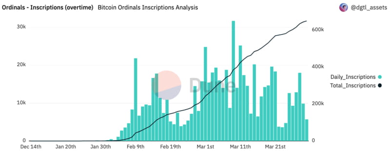 Hasta la fecha, hay casi 650.000 inscripciones ordinales en la cadena de bloques de Bitcoin.