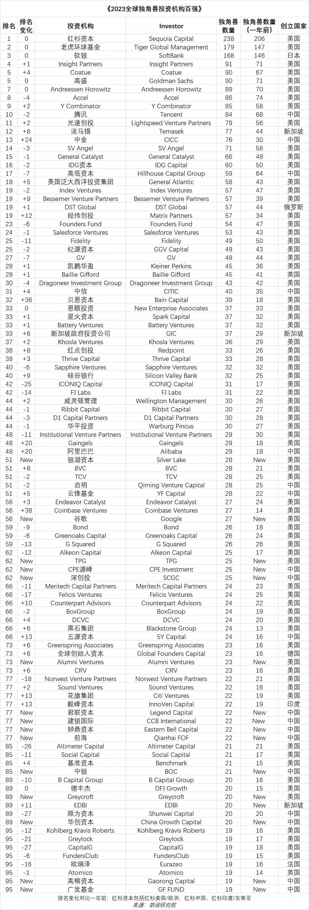 Este informe también incluye las "100 principales instituciones de inversión unicornio a nivel mundial 2023", que enumera las instituciones de inversión unicornio más exitosas del mundo según la cantidad de unicornios de esta lista en los que han invertido.