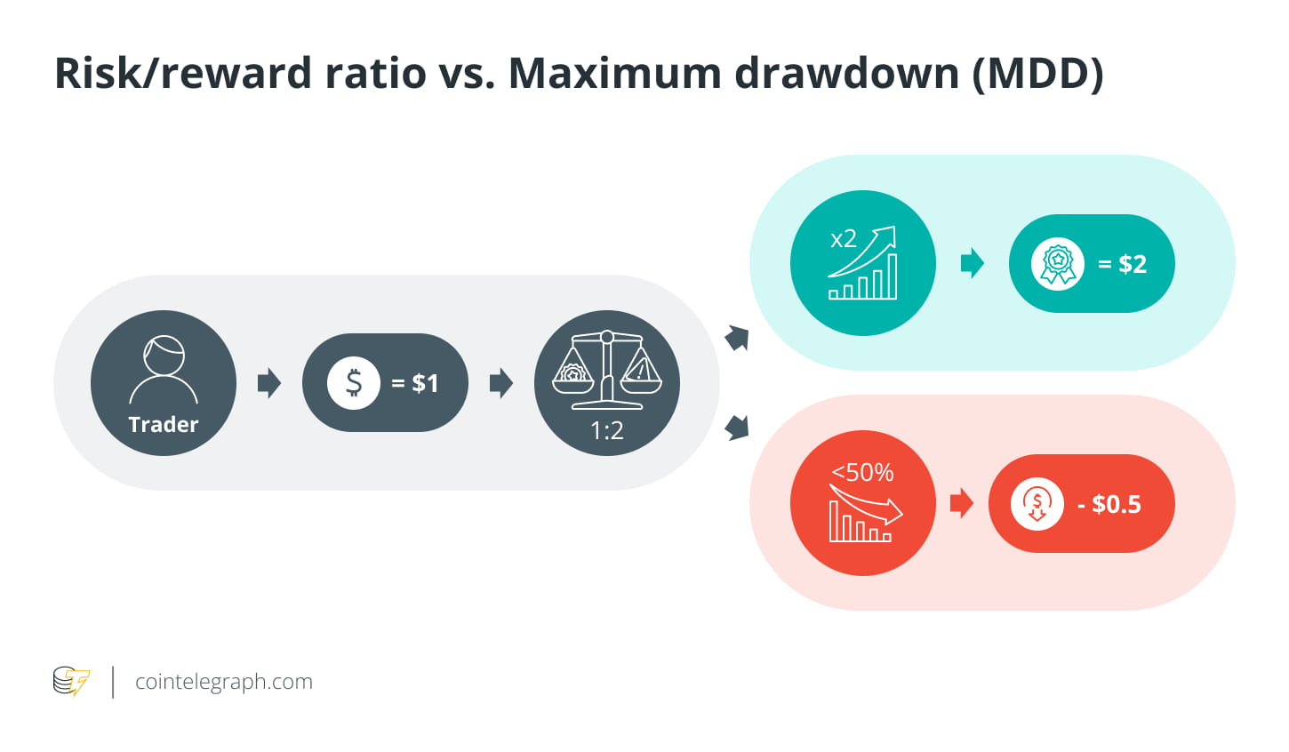 Supongamos que un operador tiene una relación riesgo/recompensa de 1:2, lo que significa que arriesga 1 dólar para obtener potencialmente una ganancia de 2 dólares. Además, imagine que la reducción máxima de la estrategia comercial es del 50%. En ese caso, el operador podría perder la mitad de su cuenta comercial antes de que la estrategia cambie y vuelva a ser rentable.