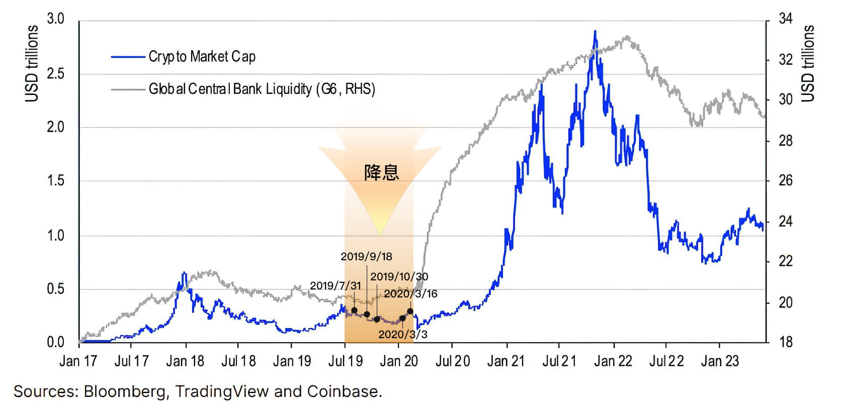Si observamos los mercados alcistas y bajistas del pasado de Bitcoin, podemos ver que la liquidez macroeconómica ha tenido un impacto importante en los precios de Bitcoin. Específicamente, el mercado alcista de Bitcoin de 2012 se produjo en el contexto de la tercera ronda de flexibilización cuantitativa de la Reserva Federal y la política de flexibilización del Banco Central Europeo, el mercado alcista de 2016 estuvo relacionado con el Brexit, y el Banco de Inglaterra reanudó su política monetaria en respuesta a la incertidumbre; Se lanzó un plan de compra de bonos para liberar aún más liquidez. Al mismo tiempo, el lanzamiento de futuros de Bitcoin atrajo una gran cantidad de fondos OTC al mercado, el mercado alcista en 2020 se vio afectado por la epidemia global y Estados Unidos adoptó una política monetaria laxa a gran escala, incluida una flexibilización cuantitativa ilimitada; , para inyectar una gran cantidad de liquidez en el mercado. Esto ha provocado entradas masivas en mercados criptográficos como Bitcoin, lo que ha hecho subir el precio de Bitcoin. Por el contrario, los mercados bajistas suelen coincidir con una crisis de liquidez global. Durante los mercados bajistas de 2014, 2018 y 2022, una crisis de liquidez global provocó que el capital saliera del mercado de Bitcoin, lo que deprimió los precios de Bitcoin.