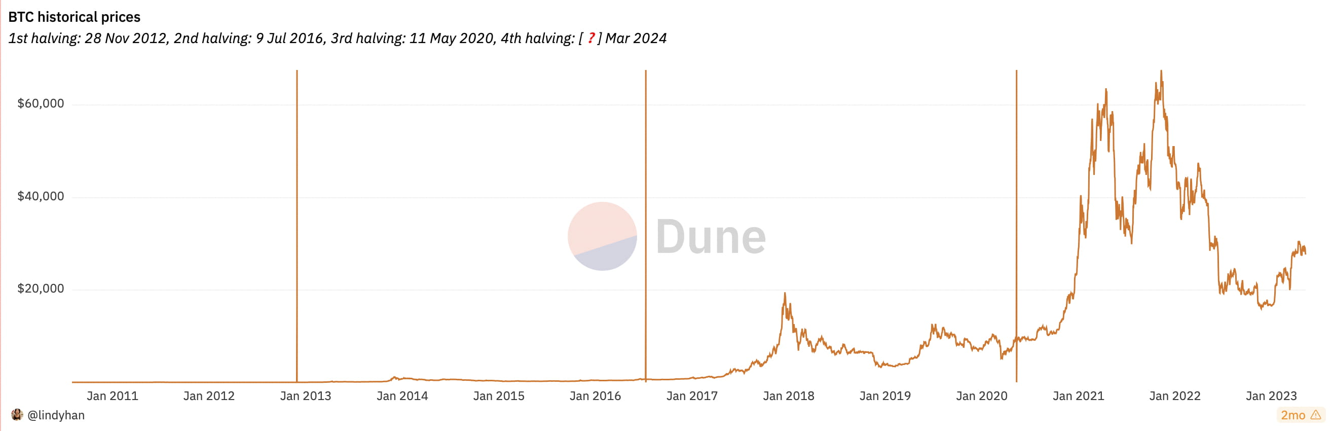 Quedan menos de 300 días para la cuarta reducción a la mitad de Bitcoin. Mirando hacia atrás en la historia de la reducción a la mitad de Bitcoin, parece que cada reducción a la mitad va acompañada de un aumento en el precio de Bitcoin: