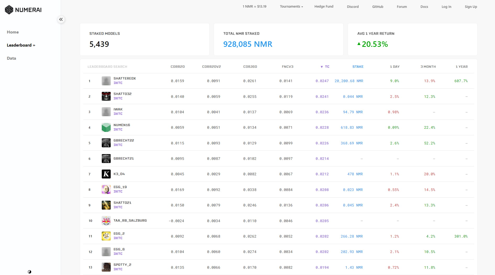 Si ingresa a las clasificaciones de Numerai y ordena por ingresos profesionales de NMR, puede ver que 7 de los 15 principales recolectores de NMR actualmente tienen NMR. Como resultado, casi la mitad de los participantes con mayores volúmenes de RMN aumentan sus tenencias cada semana. No conozco ningún proyecto de criptomonedas en el que sus mayores poseedores utilicen el token de forma tan amplia y frecuente.