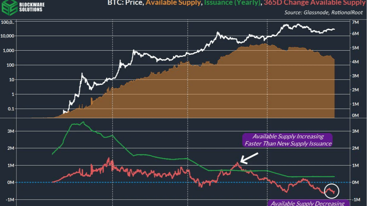 Aquí tenemos la comparación más importante ahora: durante el Halving de 2020, el suministro de BTC disponible para el comercio en realidad estaba generando ATH completamente nuevos y ahora estamos viendo mínimos de varios años durante nuestro Halving de 2024. Entonces, desde una perspectiva flexible, el Halving de 2024 será completamente diferente al Halving de 2020.