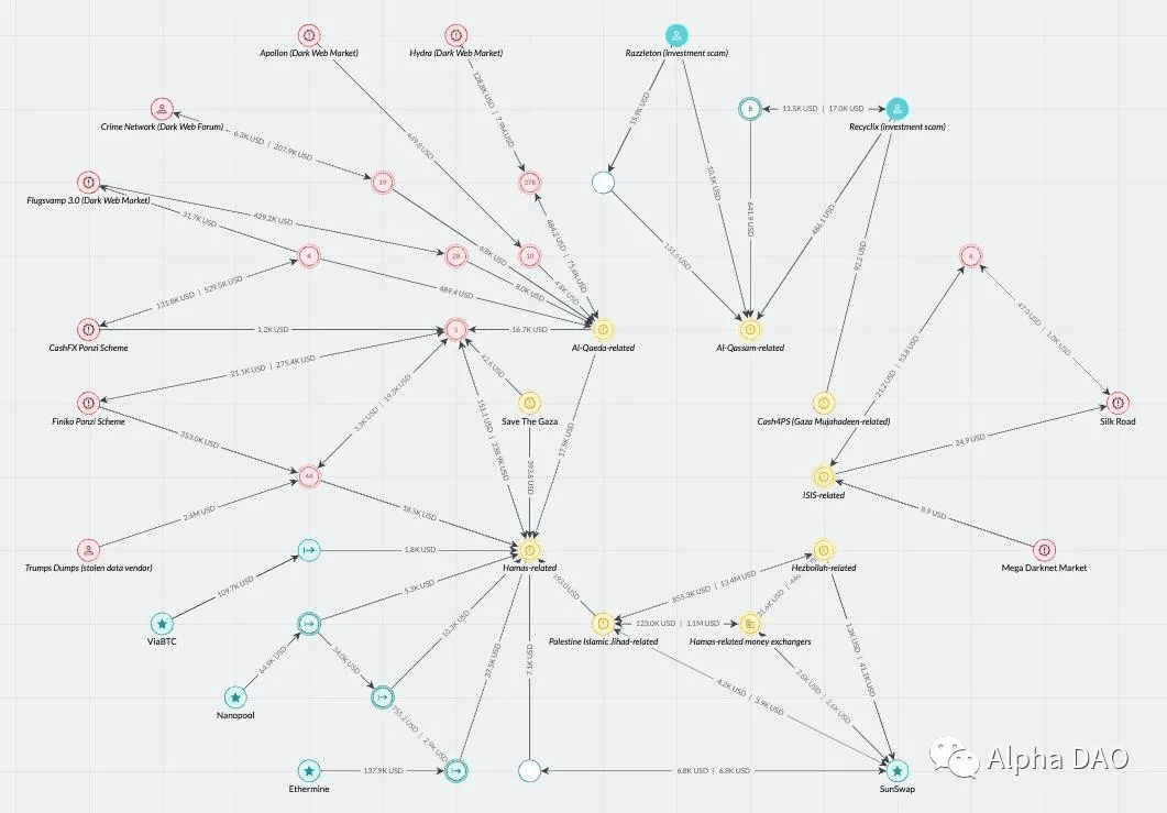 此外,加密货币使用与地缘政治事件相关,例如巴勒斯坦伊斯兰圣战组织(PIJ)的钱包与以色列和巴勒斯坦的冲突有联系。