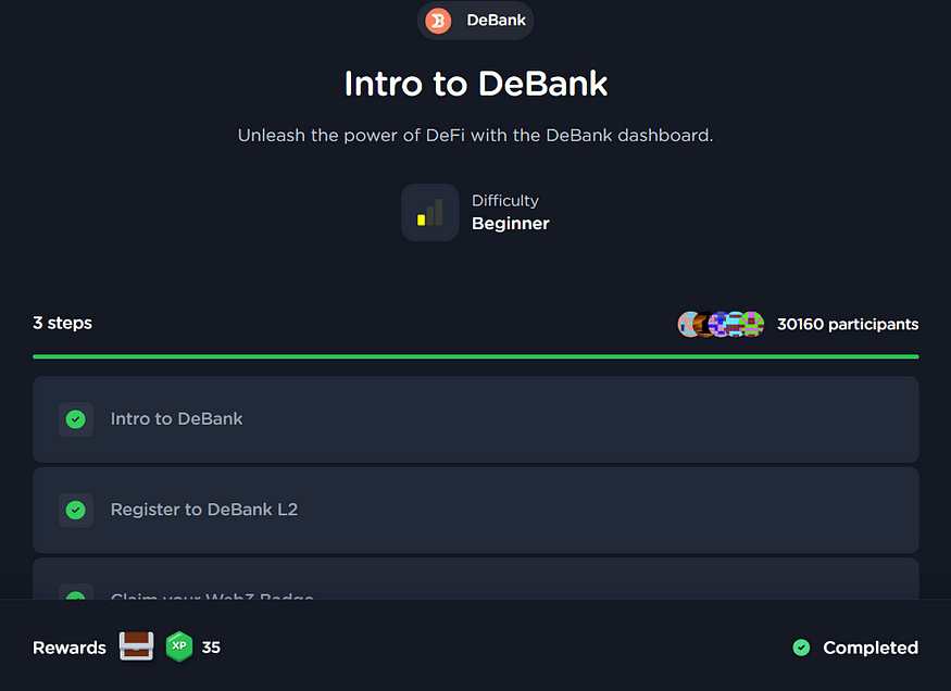 任务地址:https://layer3.xyz/quests/intro-to-debank