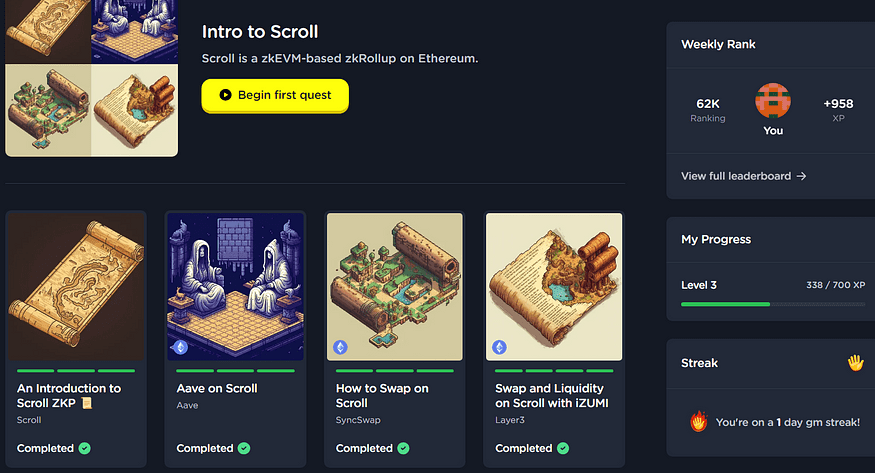 任务地址:https://layer3.xyz/collections/intro-to-scroll