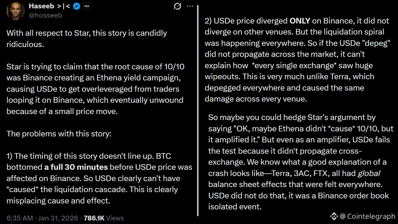 Some market participants blamed the recent crash on the lingering aftermath of the $19 billion liquidation on Oct. 10, 2025. That incident was reportedly triggered by a performance glitch in database queries at Binance exchange, resulting in delayed transfers and incorrect data feeds. The exchange admitted fault and disbursed over $283 million in compensation to affected users.