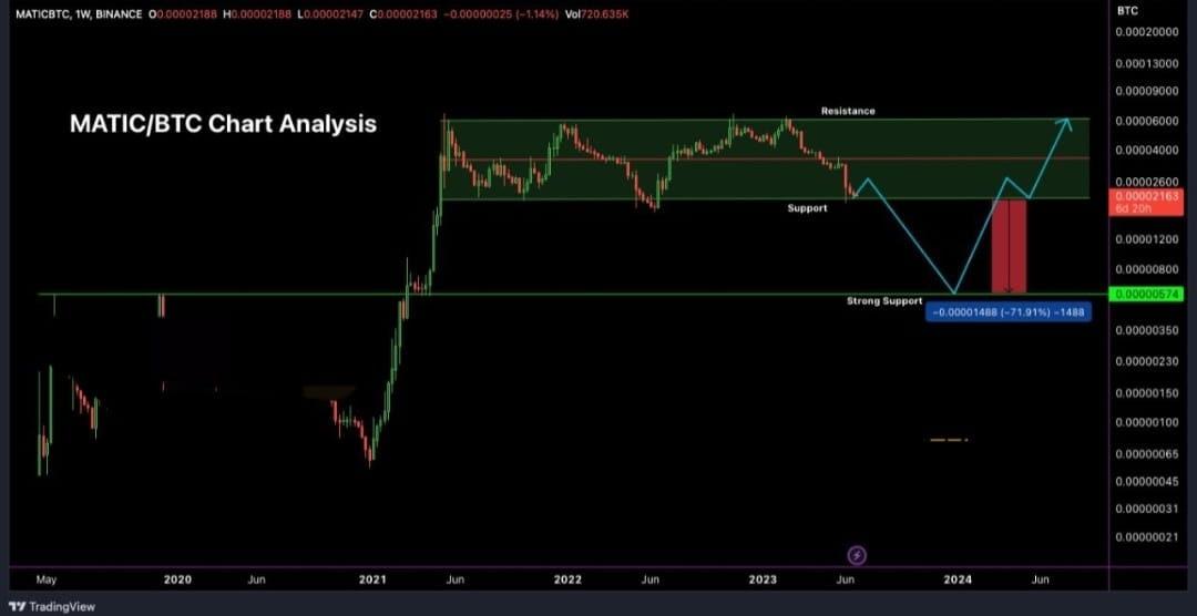 đ Technical analysis shows MATIC/BTC forming a Bull Flag pattern on the weekly chart, indicating a potential bullish trend. However, market sentiment does not support an upward move for MATIC at this time.