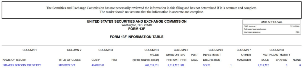 Al Warda Investments a ajouté 8,2 millions d'actions supplémentaires, d'une valeur proche de 408,1 millions de dollars. Au total, cela représente environ 20,9 millions d'actions liées à l'un des plus grands émetteurs d'ETF Bitcoin au monde.