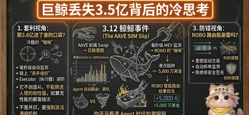 • L'Agent ne comprend pas "l'impulsivité" : dans la logique de code de base de l'Agent, vous pouvez définir : "Si la fluctuation dépasse 0,5 %, refusez directement la signature et déclenchez une alerte sur tout le réseau." Intention (Intent) dirigée : nous n'avons pas à nous soucier de savoir si Aave ou Uniswap a le plus grand réservoir. L'Agent scannera automatiquement tout le réseau, cherchant le chemin le plus stable. Les opérations de grande baleine qui frappent de front le mur, pour l'Agent, c'est juste une "erreur de programme", cela ne fonctionnera pas du tout.