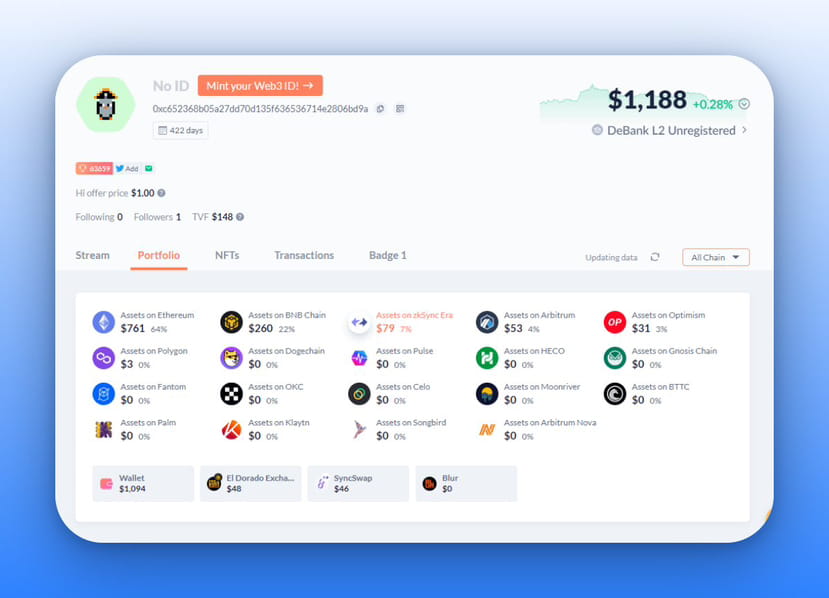 ▪️ Enregistrez un compte Debank Layer2 : debank.com/account