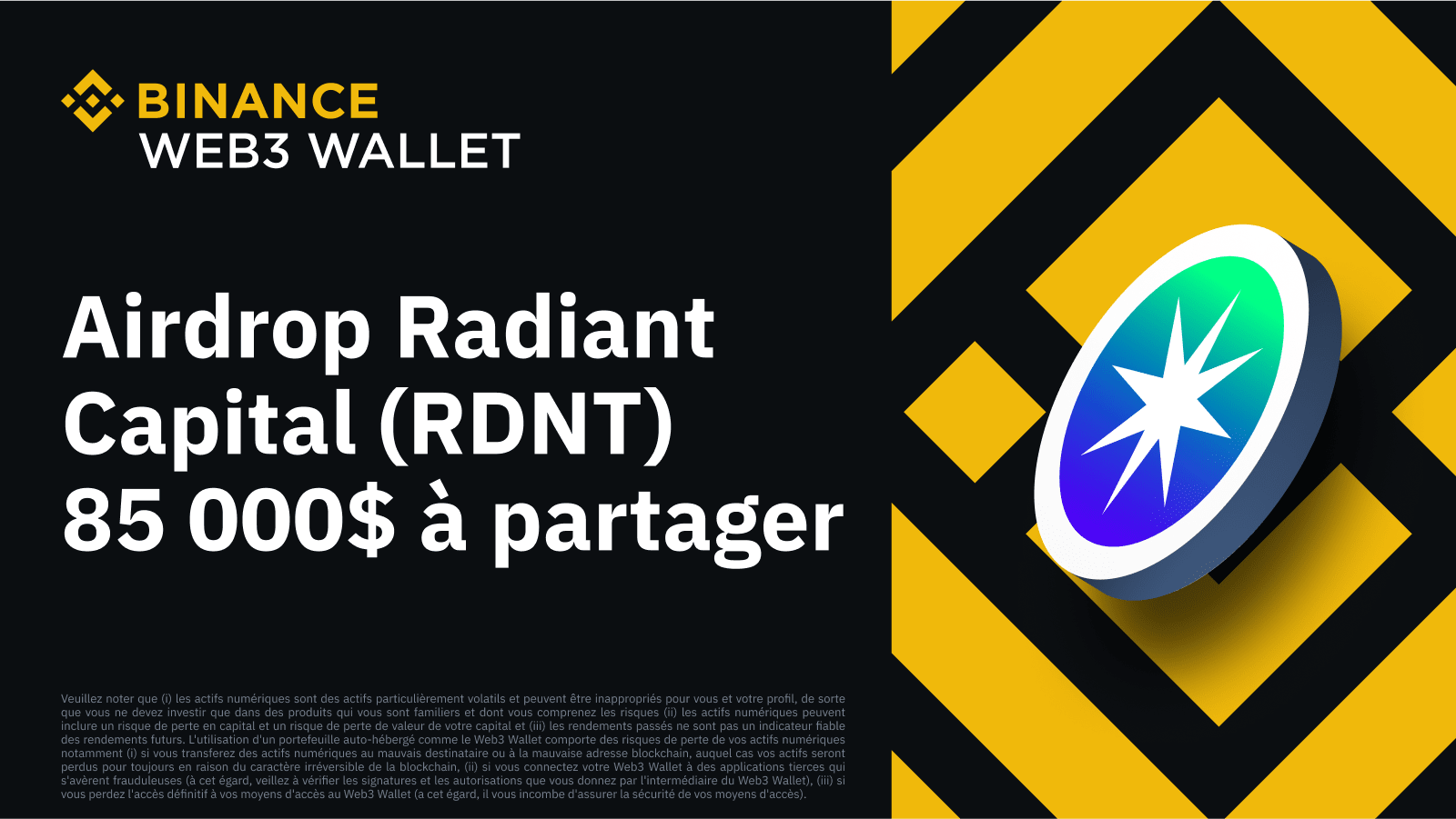 Guide détaillé de l’airdrop de 85 000 $ en Radiant Capital (RDNT) sur le Web3 Wallet de Binance