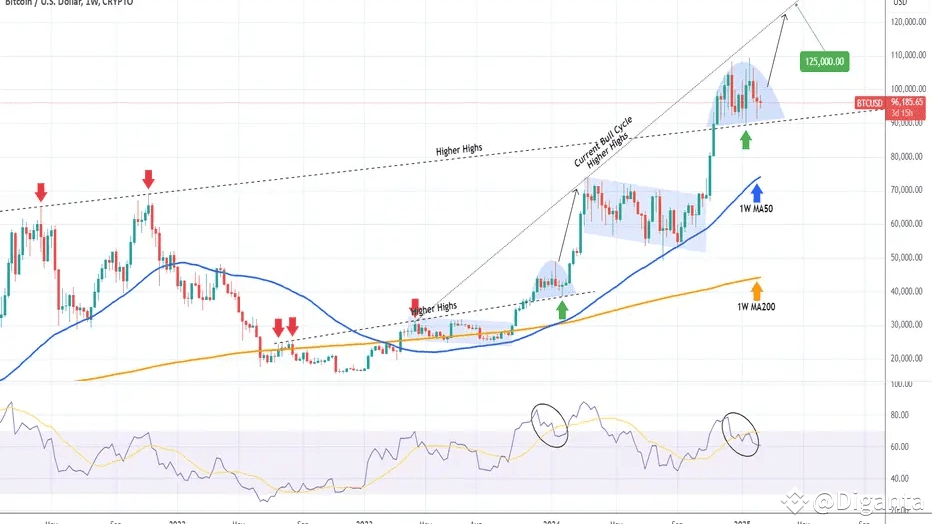 Assuming this pivotal support level holds, Bitcoin is primed for a new bullish leg. The chart suggests a potential trajectory towards the "Higher Highs" trendline of the current bull cycle (the dotted line). The initial target? A staggering $125,000! 🎯