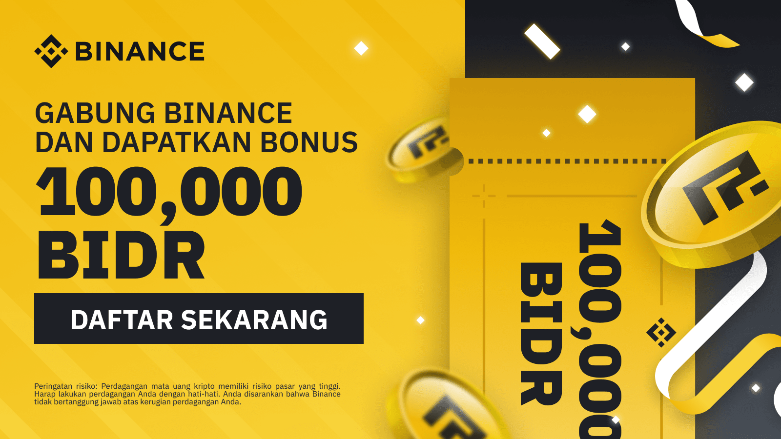 Gabung bersama Binance dan dapatkan bonus 100,000 BIDR
