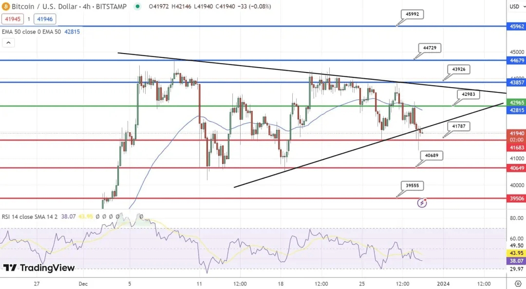 Meskipun dampak langsung terhadap harga Bitcoin masih belum pasti, meningkatnya keterlibatan lembaga keuangan besar dalam investasi mata uang kripto dapat menandakan meningkatnya penerimaan arus utama dan menumbuhkan sentimen pasar yang positif. Pada tanggal 30 Desember, Bitcoin diperdagangkan pada level teknis utama, dengan pivot $42,965 mempengaruhi arah langsungnya. Menghadapi resistensi di $43,857, $44,679, dan $45,962, jalur Bitcoin dipenuhi dengan potensi hambatan