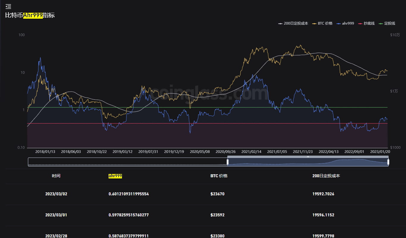 Pada saat yang sama, indikator gelembung Bitcoin dapat digunakan bersama dengan indikator Bitcoin Ahr999. Indikator Bitcoin Ahr999 adalah indikator yang sangat menarik, diciptakan oleh sembilan dewa dalam lingkaran mata uang: ahr999. Tujuannya adalah untuk membantu pengguna investasi tetap Bitcoin untuk membuat keputusan investasi berdasarkan strategi waktu. Indikator ini menyiratkan tingkat pengembalian investasi tetap jangka pendek dalam Bitcoin dan penyimpangan harga Bitcoin dari penilaian yang diharapkan. Dari perspektif jangka panjang, harga Bitcoin berkorelasi positif dengan tinggi blok. Pada saat yang sama, dengan keuntungan dari investasi tetap, pengguna juga dapat mengontrol biaya investasi tetap jangka pendek, sehingga sebagian besar biayanya adalah. di bawah harga Bitcoin. Operasi data: Ketika harga Bitcoin lebih rendah dari biaya investasi tetap jangka pendek dan penilaian yang diharapkan, meningkatkan jumlah investasi dapat meningkatkan kemungkinan pendapatan pengguna. Menurut backtest indikator, jika indikatornya lebih rendah dari 0,45, maka lebih cocok untuk berburu barang murah. Jika berada dalam kisaran 0,45 dan 1,2, maka mungkin cocok untuk investasi tetap di BTC kisaran ini, berarti ini belum saat yang tepat untuk investasi tetap.