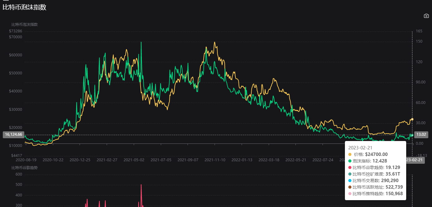 Terlihat bahwa indikator gelembung Bitcoin dan indikator Bitcoin Ahr999 saling tumpang tindih. Dalam banyak peristiwa, datanya konsisten dan sama. Kedua indikator tersebut akan lebih informatif jika dipasangkan.