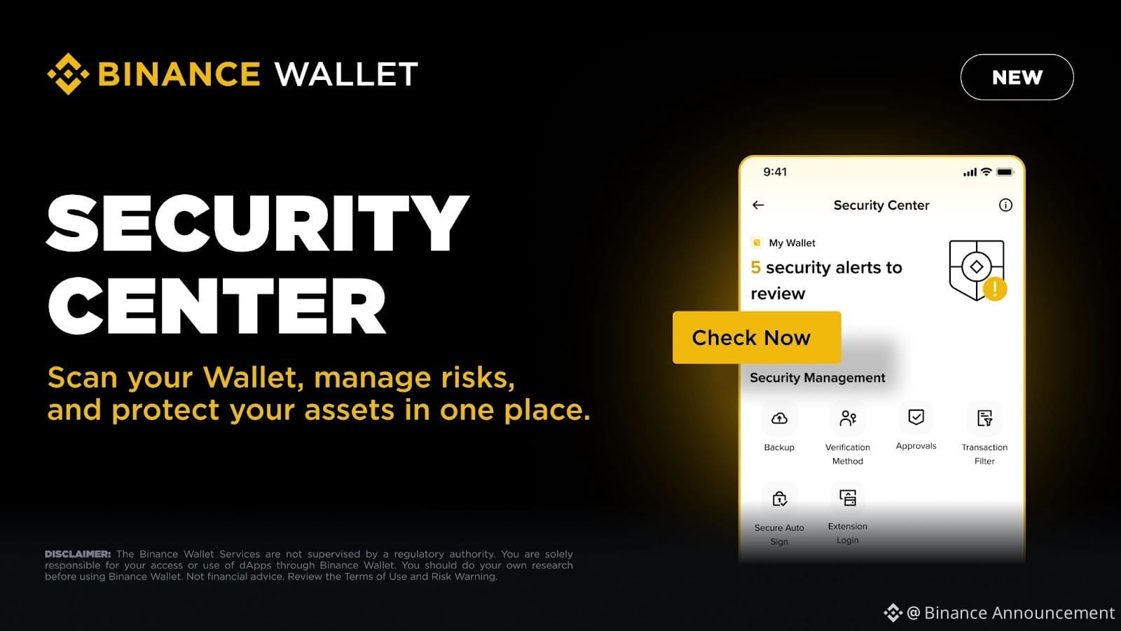Dompet Binance dengan gembira memperkenalkan Security Center, pusat keamanan baru yang dirancang untuk membantu pengguna mengidentifikasi dan mengelola potensi risiko demi melindungi aset dengan lebih baik. Di inti Security Center terdapat Security Scan, fitur terbaru yang secara otomatis memindai dompet Anda untuk mendeteksi potensi masalah keamanan dan memberikan rekomendasi yang dapat langsung diambil guna melindungi akun Anda.