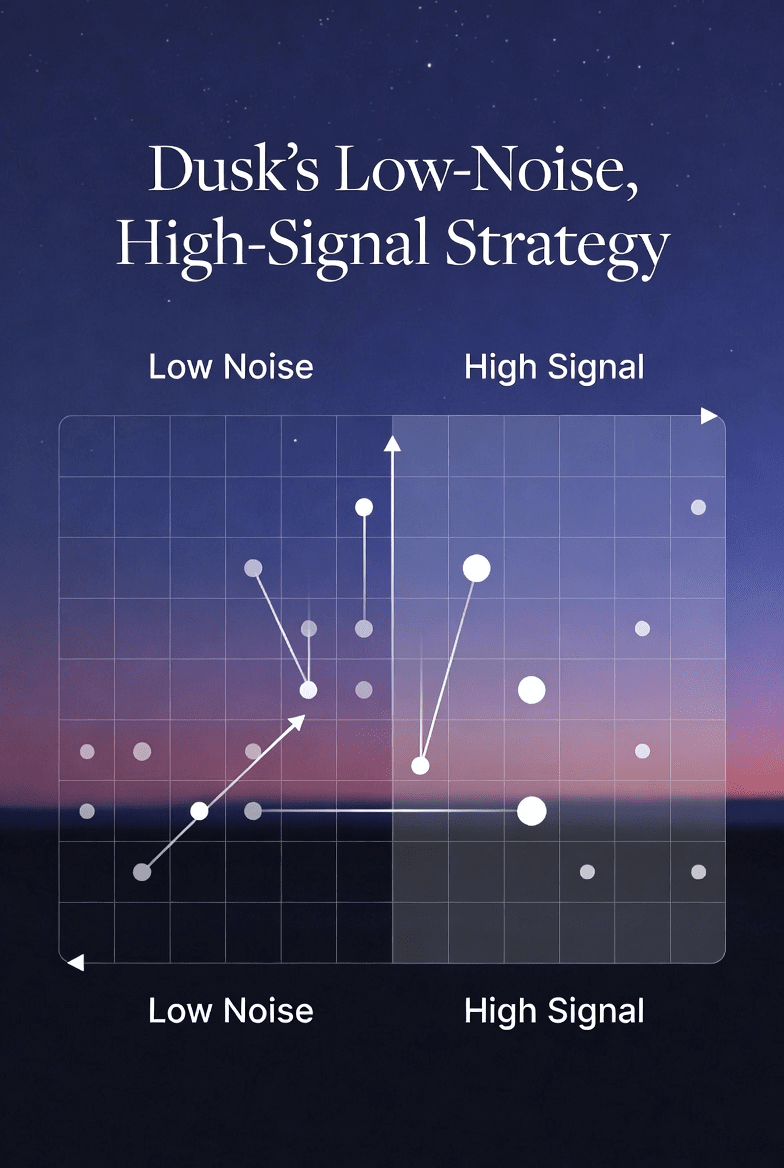 Dusk tidak mencoba untuk mengumpulkan kerumunan pedagang ritel. Fokus mereka adalah pada pasar keuangan yang diatur, di mana kata-kata seperti privasi, kepatuhan, dan ketelitian teknis benar-benar berarti sesuatu. Audiens mereka—regulator, bank, perusahaan besar—tidak peduli sedikitpun tentang hype. Mereka ingin jawaban langsung dan pembaruan yang dapat diandalkan. Jadi Dusk menghindari kebisingan dan tetap pada sinyalnya. Mereka berbicara kepada orang-orang yang menggunakan produk, bukan kepada mereka yang mengejar pump berikutnya.