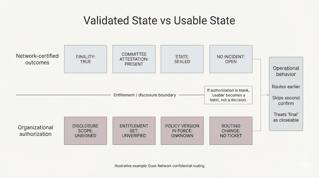 Tidak ada jawaban alarm. Tidak ada metrik berkedip. Kepercayaan sudah terintegrasi dalam aliran... dan menariknya kembali akan memerlukan justifikasi yang sesuai dengan ruang lingkup pengungkapan saat ini di Dusk.