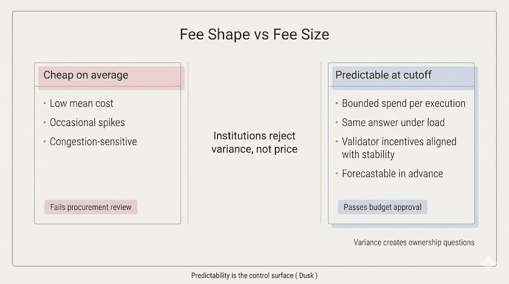 'Murah" bukanlah kontrolnya. Prediktabilitas adalah. Unit harga gas memberi Anda sesuatu yang dapat Anda anggarkan. Pemulihan biaya memberi validator Dusk alasan yang lebih sedikit untuk mengejar kemacetan hanya untuk tetap solvent. Redistribusi biaya sangat penting terutama untuk apa yang dilakukannya terhadap insentif: apakah operator dibayar untuk menjaga sistem tetap stabil, atau dibayar untuk membiarkannya berputar.