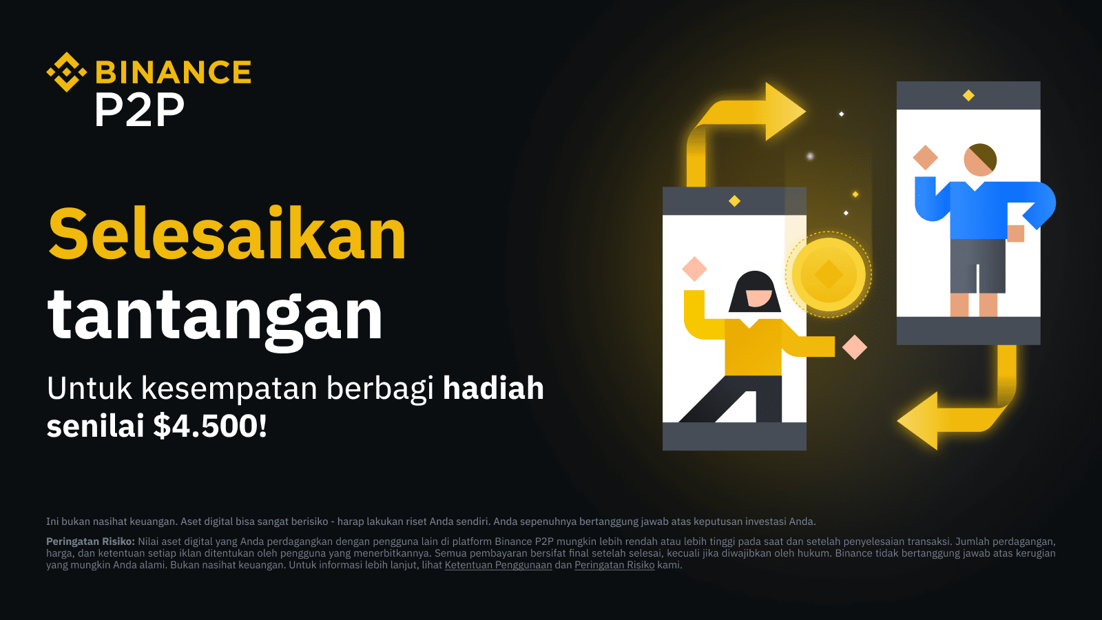 Peringatan Risiko: Harga aset digital dapat berubah-ubah. Fluktuasi ini dapat memengaruhi nilai aset digital yang Anda beli atau jual di platform Binance P2P, yang mungkin lebih rendah atau lebih tinggi pada saat dan setelah penyelesaian transaksi. Anda sepenuhnya bertanggung jawab atas keputusan investasi Anda dan Binance tidak bertanggung jawab atas kerugian yang mungkin Anda alami. Dengan menggunakan platform Binance P2P, Anda memperdagangkan aset digital secara langsung dengan pengguna lain. Binance memfasilitasi transaksi dengan merilis aset digital setelah pertukaran mata uang fiat offline dikonfirmasi oleh kedua belah pihak. Jumlah perdagangan, harga, dan ketentuan setiap iklan ditentukan oleh pengguna yang menerbitkannya. Semua pembayaran bersifat final setelah selesai, kecuali jika diwajibkan oleh hukum. Binance tidak memiliki hak maupun kewajiban untuk menyelesaikan perselisihan apa pun yang timbul dari pembayaran yang diselesaikan. Binance tidak bertanggung jawab atas kerugian yang Anda alami sehubungan dengan pembayaran yang diselesaikan. Bukan nasihat keuangan. Untuk informasi lebih lanjut, lihat Syarat Penggunaan dan Peringatan Risiko kami.